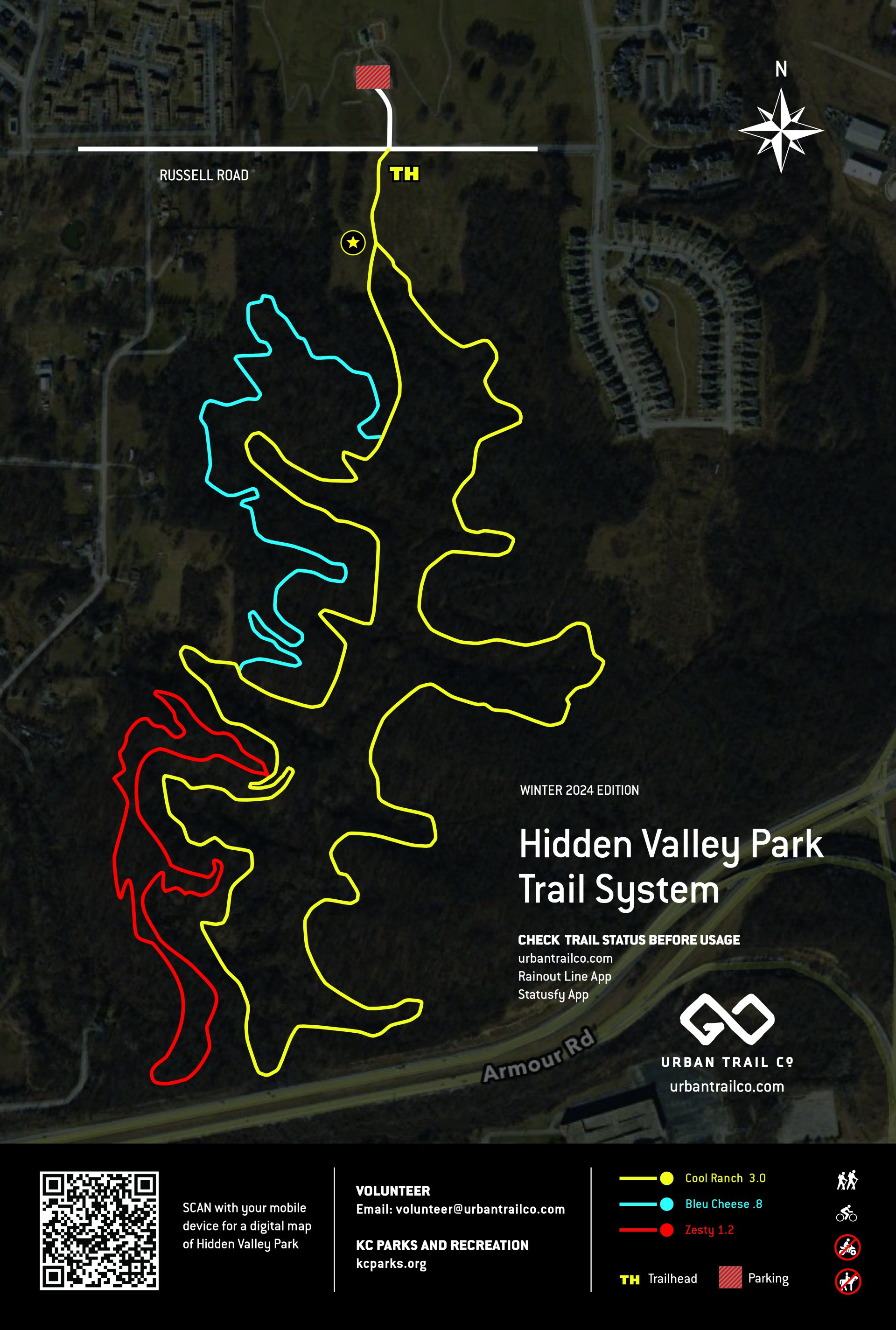 4 miles. The Hidden Valley Park trail skirts the rim and dives into the valley that earned the park its name. A mid-length trail, Hidden Valley has a remote feel and boasts unique, stunning views down into the valley.